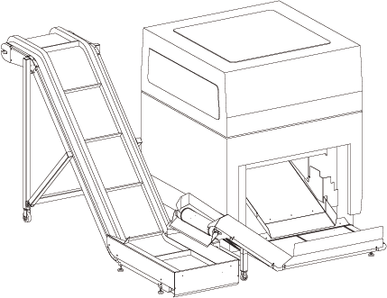 Bei Dreischneidern mit integriertem Förderbändern können die Späneförderbänder KF 110-80, KF 145-80 und KF 175-80 ohne vorgeschaltetes Hilfsförderband installiert werden. Hierbei erfolgt der Späneabtransport im rechten Winkel vom Dreischneider weg.
