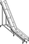 Von hier wird der Abfall auf das anliegende aufwärts fahrende Förderband (SF) befördert, an dessen Ende ein Container gestellt wird.