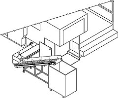 Das Förderband läßt sich entsprechend den räumlichen Verhältnissen links- oder rechtsseitig entlang der Bogenstanze fördernd oder auch gerade wegführend von der Maschine aufstellen.