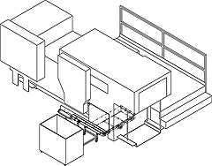 Zum Abtransport von Stanzabfällen mit zwei Späneförderbändern in höhere Container (bis 190 cm Höhe).