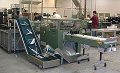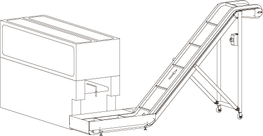 Bei Dreischneidern mit integriertem Förderbändern können die Späneförderbänder KF 110-80, KF 145-80 und KF 175-80 ohne vorgeschaltetes Hilfsförderband installiert werden. Hierbei erfolgt der Späneabtransport im rechten Winkel vom Dreischneider weg.