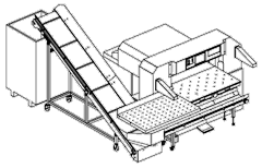 Für Planschneider mit automatischer Späneentsorgung (ASE). Der Abfall fällt auf das Hilfsförderband (HF) welches unter dem Planschneider installiert wird.